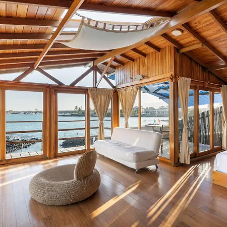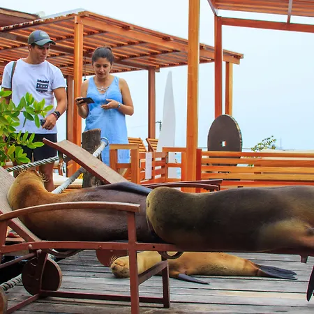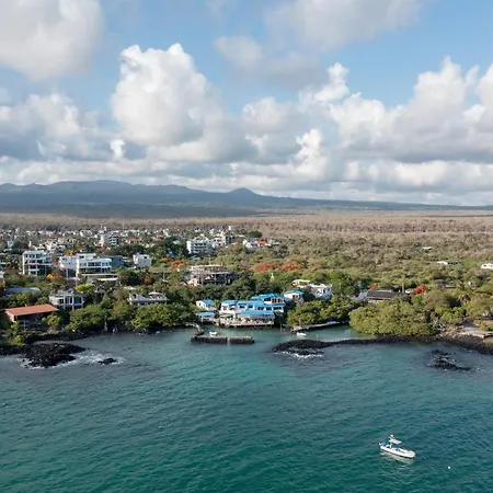 Blu Galapagos Sustainable Waterfront Lodge Puerto Ayora er et hotel beliggende lige ved Visitor Center of Galapagos National Park og 200 meter væk fra Galeria Aymara og har 24 timers security og en udflugtsskranke. Playa de la Estacion ligger cirka 500 meter væk herfra.